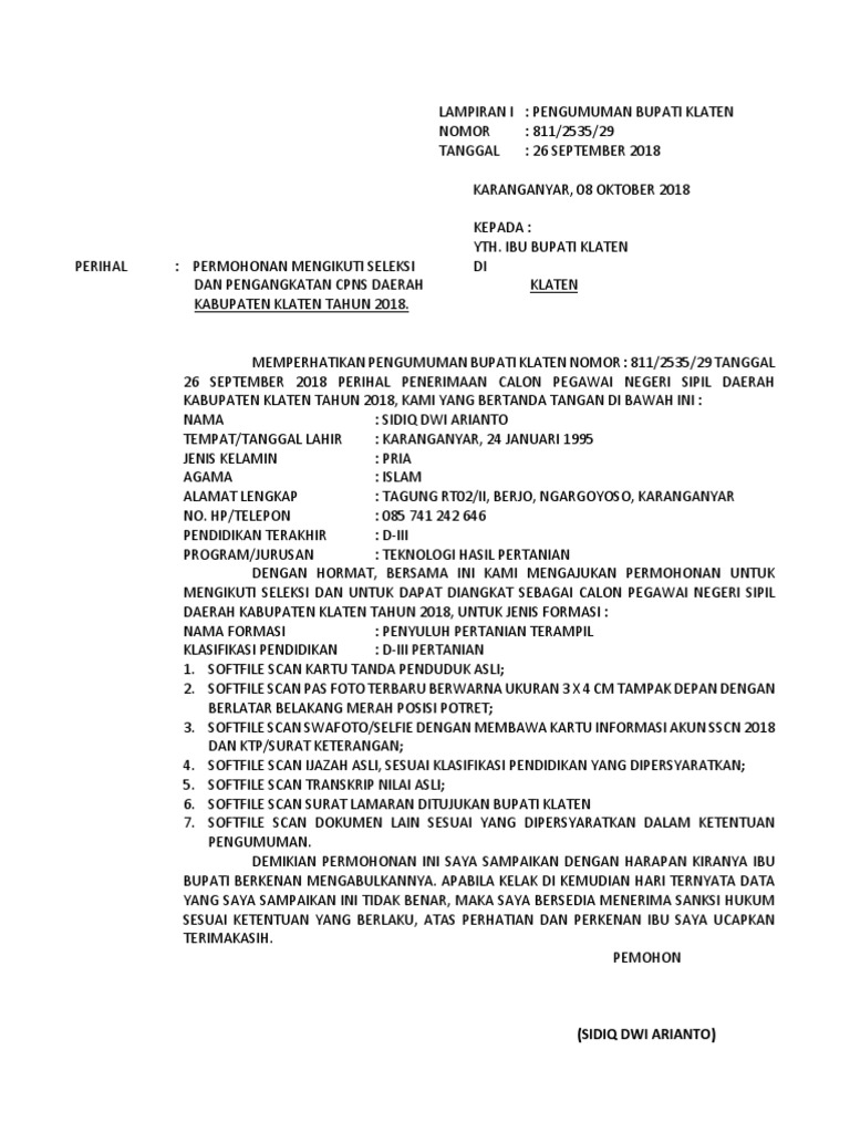 Demikian surat lamaran ini dibuat. Check spelling or type a new query. Salah satu instansi yang meminta para pelamarnya menyertakan surat lamaran cpns 2021, yakni kementerian hukum dan hak asasi manusia (kemenkumham). Berikut rincian formasi, surat lamaran, dan surat pernyataan dokumen word berkomentarlah sesuai dengan postingan artikel. Bagi calon pelamar cpns kemenhub 2021, surat lamaran dan surat pernyataan dapat didownload di artikel ini.